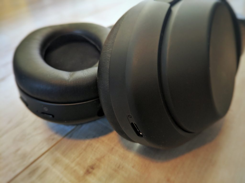 右侧耳罩最下方设有 Type-C 接口,负责快速充电;外侧则是负责触控操作的面板。