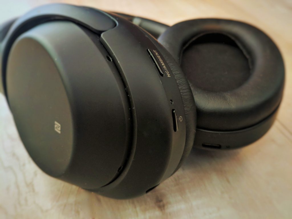 左侧耳罩侧边分别设有 NC/Ambient 降噪效果控制键电源键 两个按键,最下方有提供 线路输入3.5mm 接口;同时耳罩外侧是 NFC 感应区