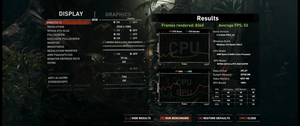 • 本作的优化依现在来看很不错。我分别使用 GTX 1060 和 Vega M GH 在默认「Max-Fidelity」的视效设定中以 1080P 的分辨率进行游戏,垂直同步开启的情况下帧数基本能够维持于 60 FPS。